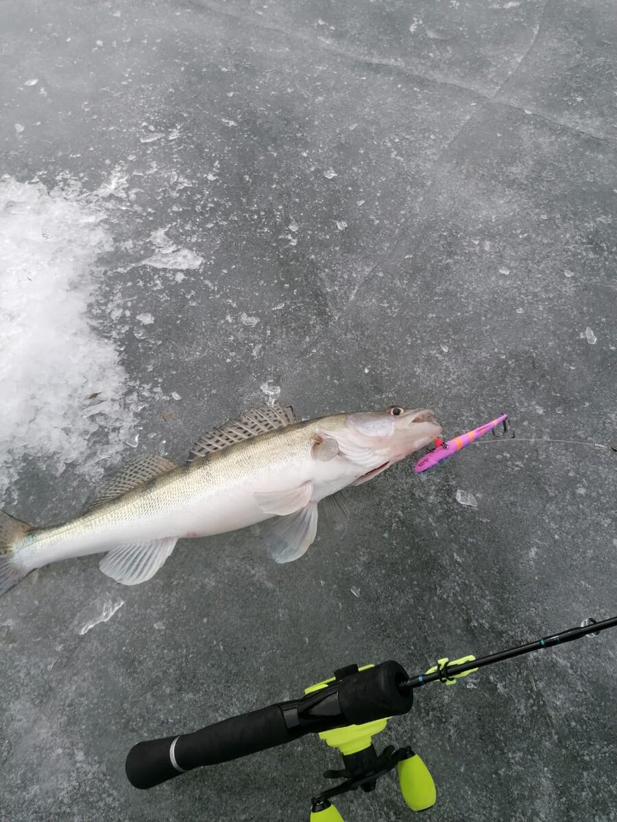 Радость, кайф, я это видела! Момент, даже миг! Дон. Утро. Облачно, пасмурно, ветренно. Я хочу разловить Нарвала, а Саня Вагнера, идём к лункам. Проходит минуты две. И тут слышу такой радостный громкий крик! Я смотрю и вижу гнущуюся удилку в руках. -Ура, я обловил Вагнера! Как здорово! О мой судак!! Три секунды и судак на льду! Вы не представляете, как радуют такие эмоции искренней настоящей радости. Это все рыбалка и рыбы, несут радость людям!! Это так искренне! По настоящему! Хотеть и исполнить желание благодаря рыбе, и тому что правильную приманку предложил! А вот Нарвал остался у меня не обловленным. Я пыталась я ходила и туда и сюда. В камеру искала рыбу, в эхолот смотрела пытаясь что-то понять. А по итогу вся бель с этого места куда-то мигрировала. Куда.... Кто знает. Решили уже после обеда прогуляться по Дону, видела кабанов вдалеке перебегающих Дон. А потом услышала какой то звук в деревьях испугалась думала сейчас на меня как побежит кабан.