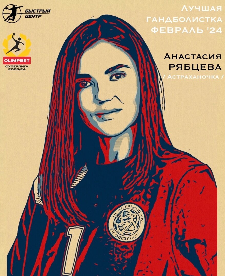 По итогам опроса "Быстрого центра" лучшей гандболисткой февраля была признана вратарь "Астраханочки" Анастасия Рябцева. Голкипер нижневолжской команды в каждой игре совершала не менее 10 сейвов и может похвастать 35 процентами надёжности. Классное выступление вратаря позволило волжанкам в последнем месяце зимы набрать 7 очков.