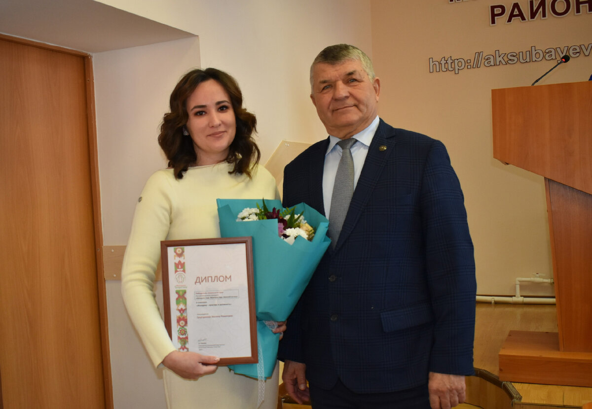 На зональном этапе конкурса «Женщина года. Мужчина года: женский взгляд» в номинации «Женщина – культура и духовность» среди женщин, достигших выдающихся результатов в области искусства, культуры и просвещения наш район представила Эвелина Сруртдинова. Любители сценического искусства с восхищением наблюдают за ее выступлениями, ее голос не спутают ни с каким другим. Участие в любом концерте Эвелины Сруртдиновой становится украшением программы и оставляет самые яркие впечатления. Этому искусству она успешно обучает своих воспитанников в ДШИ. Учащиеся и сама преподаватель, являются лауреатами международных, всероссийских и республиканских конкурсов. Преподаватель высшей квалификационной категории, окончила Казанский музыкальный колледж им И. В. Аухадеева по специальности «Музыкальное искусство эстрады», Российский университет театрального искусства – ГИТИС», г. Москва, по специальности «Актерское искусство», в настоящее время является студенткой второго курса Санкт- Петербургского госуд