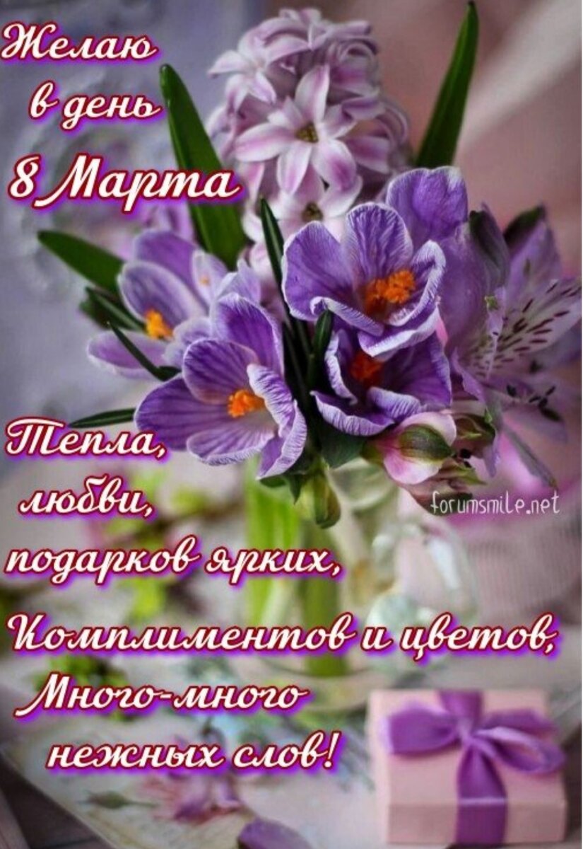 Дорогие дамы! От души поздравляю вас с весенним праздником 8 Марта! Пусть ваша жизнь будет наполнена солнечными днями, цветущими садами и веселыми сюрпризами. Пусть вас окружают ласковые слова, забота и внимание близких людей. Пусть каждый день приносит новые победы и достижения, а радость и улыбка никогда не покидают вас. Счастья, любви и мирного неба над головой! Пусть весна подарит нежность, Доброту и радость, Чтоб желания, надежды С легкостью сбывались! Теплых слов, букетов ярких, В сердце — чувств красивых! Комплиментов и подарков, Дней всегда счастливых! В веселом вихре праздничном Пусть этот день пройдет! С восторгами и радостью Опять весна придет! Пусть счастье не кончается, И вдаль мечта зовет, Желания сбываются, Во всем удача ждет! Пусть этот нежный День Весны Тебе подарит новостей чудесных, И будет полным ясной глубины, И пряных запахов древесных. Пусть алый цвет и бирюза Тебе поднимут настроение, И будут яркими глаза, И чувства — словно в день рождения!