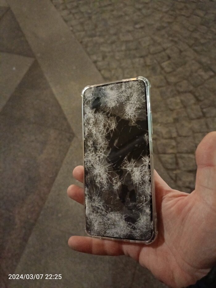Хотелось бы выразить СПАСИБО тому человеку, который нашел телефон и отнес его в ближайшее, хоть и не логичное, место. И сотрудникам и охране Капеллы, которые допоздна находились в здании и вернули "потеряшку". Ну и к сути. Жена умудрилась потерять телефон выходя из такси на Певчевском мосту. Машина, видимо уезжая, проехала по телефону. Хоть от моста до Капеллы - метров 50 - телефон туда как-то телепортировался. Местоположение удалось локализовать через ми-аккаунт. Так что по приезду расстроенной жены поехал искать на месте. Была мысль, что телефон сбросят в мусорку, так что готовился к худшему (доказывать охране что я не "солевой"). К счастью, удалось спросить у охраны и доказать что точно имею отношение к этому телефону. Несмотря на полные тотальные повреждения экрана, в остальном телефон видимо все еще рабочий... Во всяком случае кроме локации эта сволочь еще и разбудила будильником в 07: 00. В общем, огромное СПАСИБО неизвестным людям. Ну и просто бонусное: почти пустая Дворцовая. Х