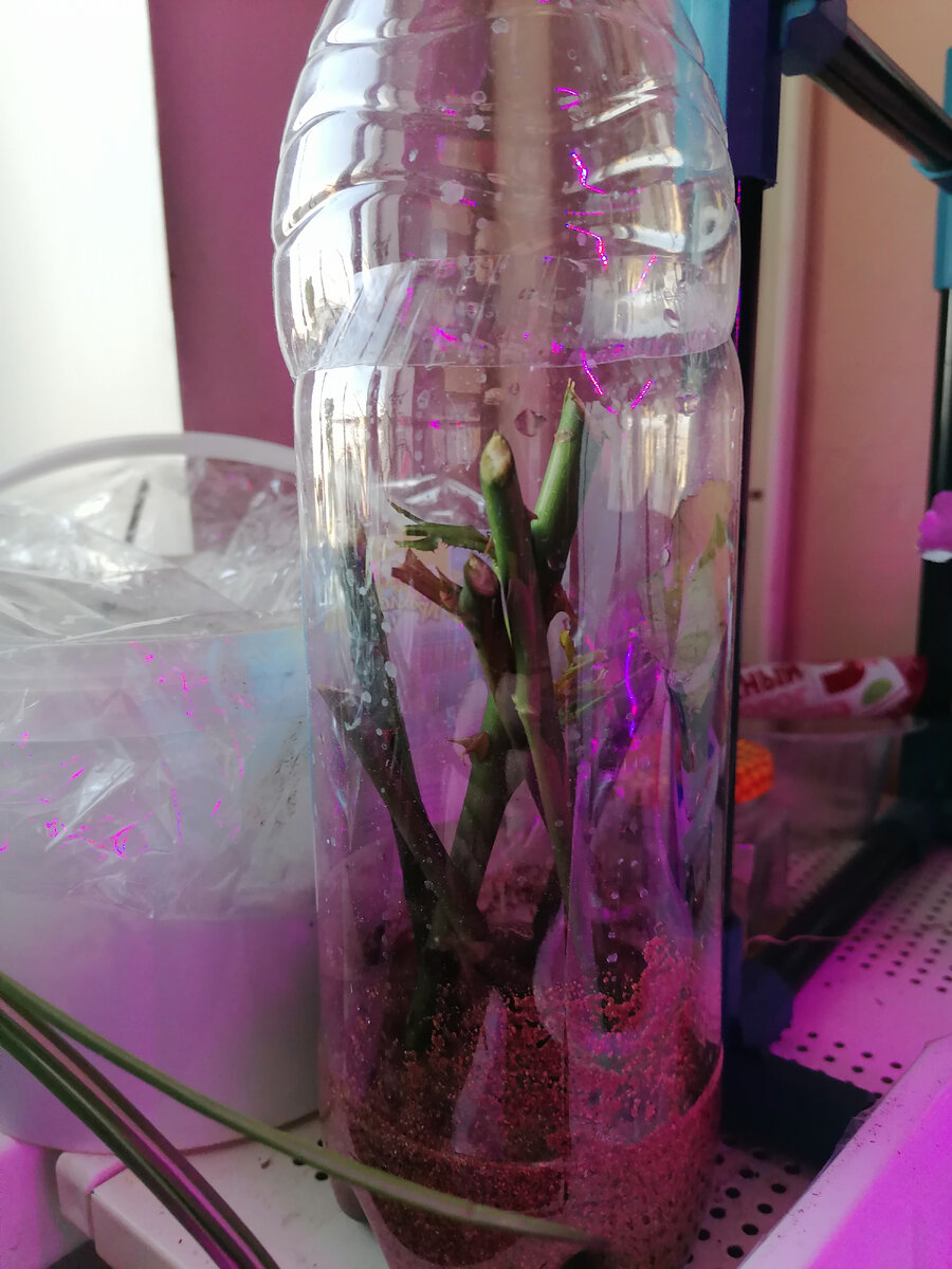 В этом году от внука получила на 8 марта в подарок букетик роз. Внук учится в университете в другом городе и приехал поздравить. Я уже не раз думала о том, чтобы купить розочки в буклете и поэкспериментировать с черенкованием. Свои розы на даче уже черенковала раньше. Пока эффект не очень. В прошлом сезоне только одна прижилась. В этом что будет, пока неизвестно? Поэтому розы из букета внука сразу пошли на черенки Пока поместила в такую терличку в вермикулит. Ну а вершки стоят в вазочке Розы шикарные. У меня есть подобные. На даче растет черная магия и ещё одна розовая роза. Как называются эти, не знаю. Но очень хочу, чтобы дали корешки! Вот такой лучший подарок на 8 марта розоводу. А вы пробовали укоренять розы из букета ?