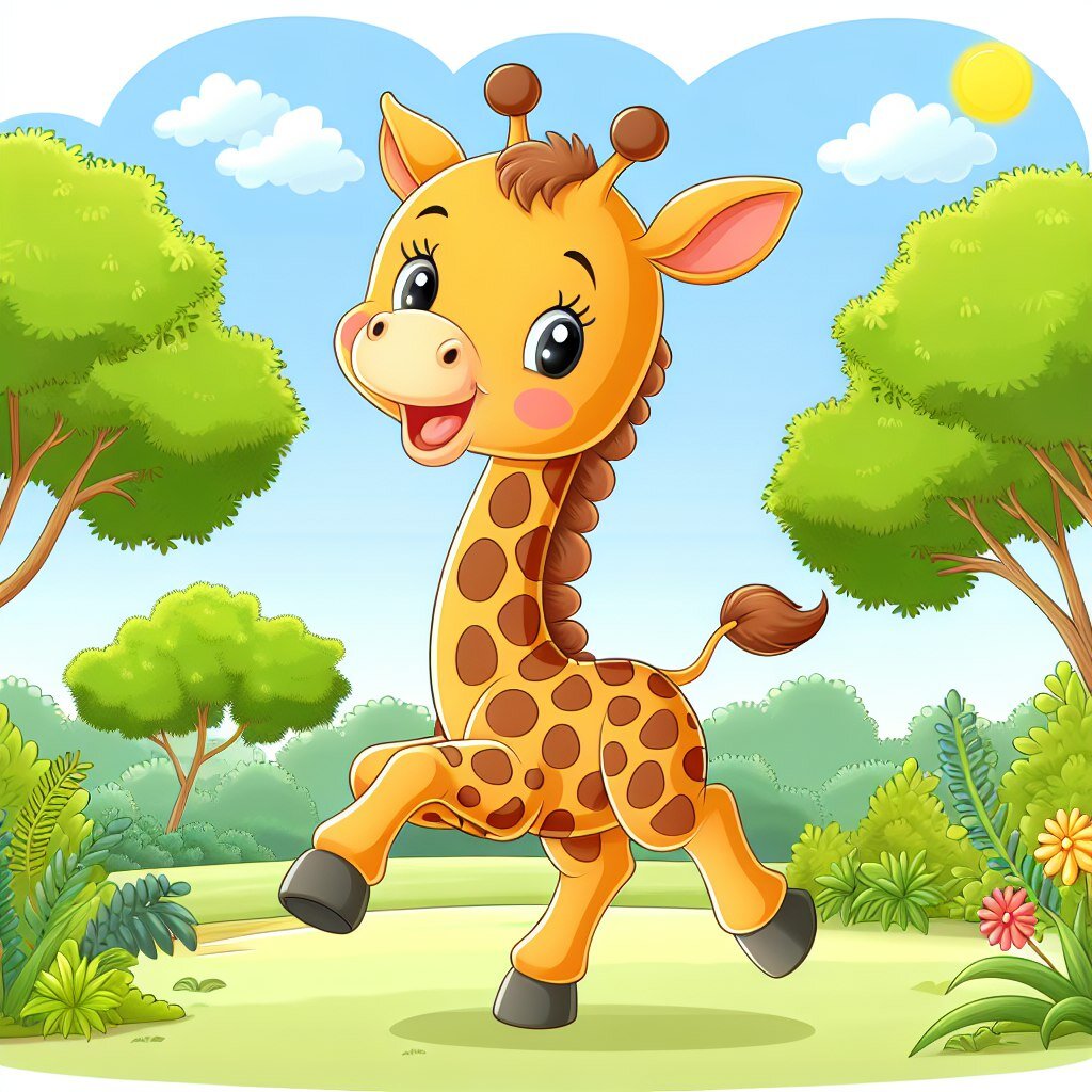 6. Выражение движения: Можете добавить немного динамики, изобразив жирафа в движении — например,