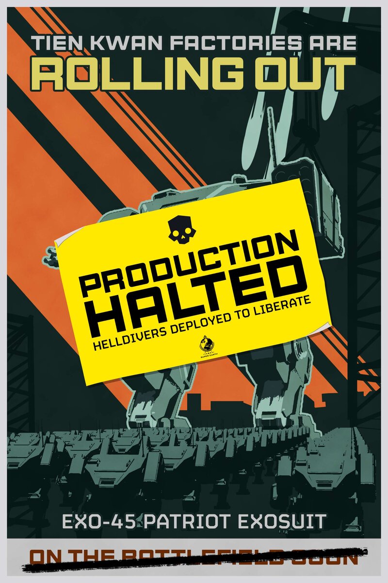 Похоже, нам придется еще немного подождать появления мехов в Helldivers 2. Студия-разработчик Arrowhead Game Studios объявила, что планета-фабрика Тянь Куан подверглась нападению. Буквально на этой неделе Arrowhead подтвердила, что "экзокостюмы EXO-45 Patriot полным ходом производятся на заводах Тянь Куан" и скоро будут готовы к использованию на полях сражений. Но теперь ситуация изменилась, вероятно, под влиянием таинственного Гейм-мастера Джоэла, который, как ранее выяснилось, дергает за ниточки, контролируя события в игре, подобно Мастеру подземелий из Dungeons & Dragons. В твите Arrowhead пишет: ЭТО НЕ УЧЕНИЯ! Наши фабрики атакованы, все производство остановлено. Дайверы высажены, чтобы освободить Тянь Куан! Постер, представленный вместе с тизером мехов ранее на неделе, был изменен и теперь на нем красуется надпись: "Производство приостановлено — Дайверы отправлены на освобождение". Для тех, кто следил за ситуацией с мехами, это может быть немного разочаровывающим. Сейчас в игре на