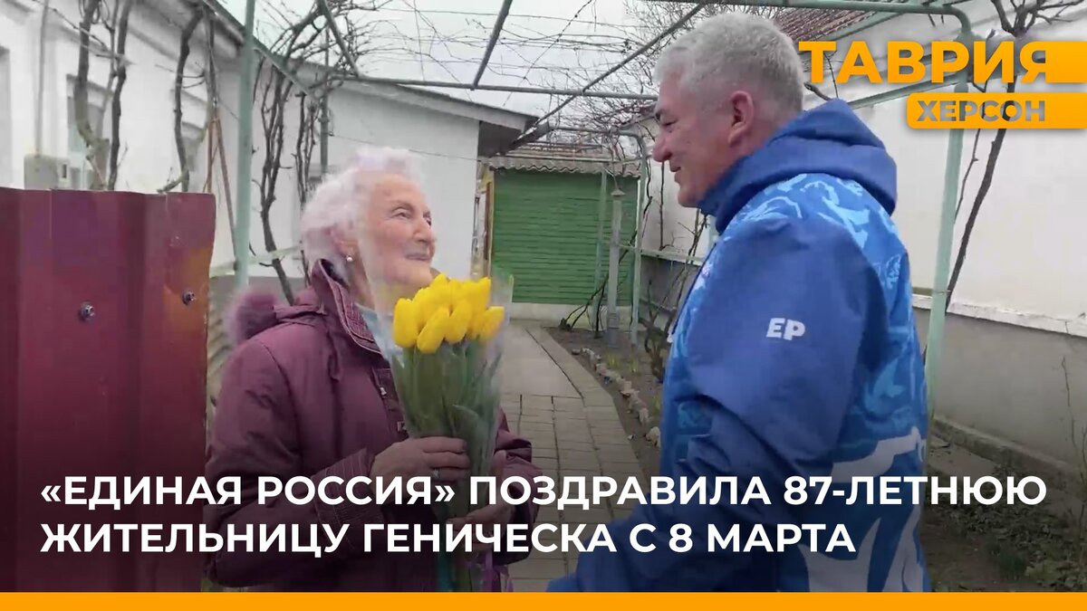Партия «Единая Россия» в Международный женский день поздравила представительниц прекрасного пола региона. Особое внимание было уделено тем, кто большую часть своей жизни посвятил труду и семье. Одна из них — 87-летняя жительница Геническа Софья Деонидовна Федорова. Софья Деонидовна — ветеран труда и ребенок войны. Сейчас живет одна, так как муж умер, а сын живет далеко. Женщину навестили представители партии «Единая Россия» и принесли ей подарки и цветы к 8 Марта. «Мы сконцентрировали внимание на таких вот адресных поздравлениях. Массовые празднования в области из-за оперативной обстановки не проводятся, но праздник нашим дорогим женщинам дарить хочется и мы просто обязаны это делать. Они – наш верный тыл! В каждом районе области депутаты от «Единой России» и региональные, и муниципальные начиная со вчерашнего дня отправились в гости к известным женщинам Херсонской области – ветеранам труда, войны», — рассказал член фракции «Единая Россия», заместитель Председателя Херсонской областной