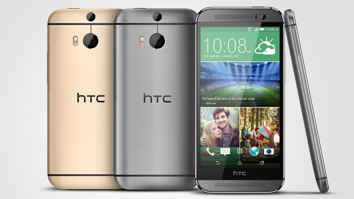 В отличие от своих конкурентов в лице Samsung, LG и Sony, компания HTC на выставке MWC 2014 вела себя скромно. Вместо нового флагмана она показала две модели среднего класса, ничем кроме стереодинамиков не выделяющихся. Для своего топового аппарата One (M8) фирма решила провести отдельную презентацию уже в марте, причём сразу на всех ключевых рынках. Смартфон представлял собой обновление прошлогоднего HTC One, которому обновили аппаратную начинку и увеличили диагональ экрана. Получил HTC One (M8) и цельнометаллический корпус с тоненькими вставками для антенн. Позднее это решение позаимствуют и другие производители, включая Apple. Несмотря на оригинальный дизайн и наличие громких фронтальных стереодинамиков, экстерьер смартфона не был лишён недостатков: кнопка питания всё ещё находилась на верхней грани, а рамки вокруг 5-дюймового экрана заметно увеличивали габариты аппарата. К счастью, разблокировать и заблокировать дисплей можно было с помощью двойного тапа (как на смартфонах LG), а р