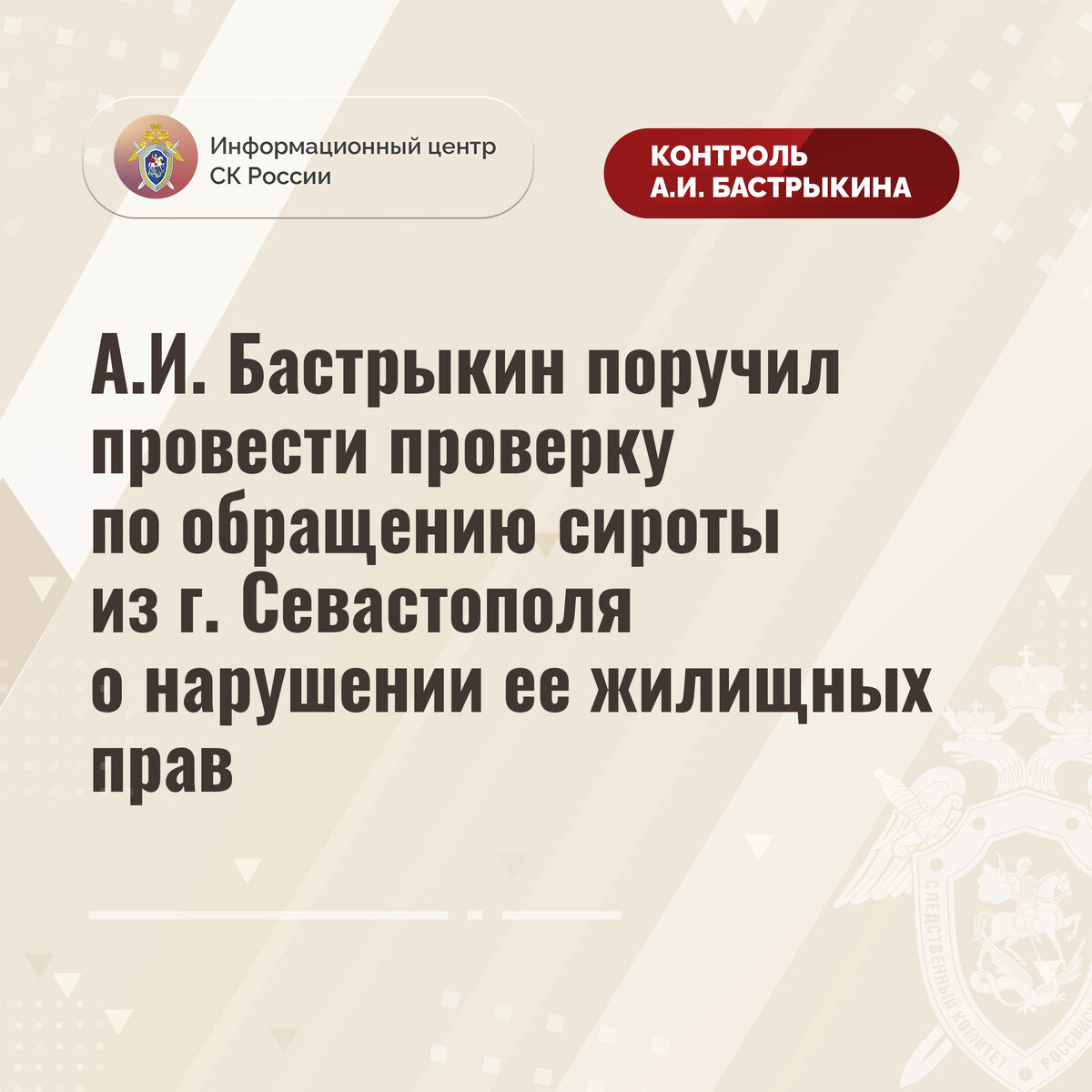 А.И. Бастрыкин поручил провести проверку по обращению сироты из г. Севастополя о нарушении ее жилищных прав