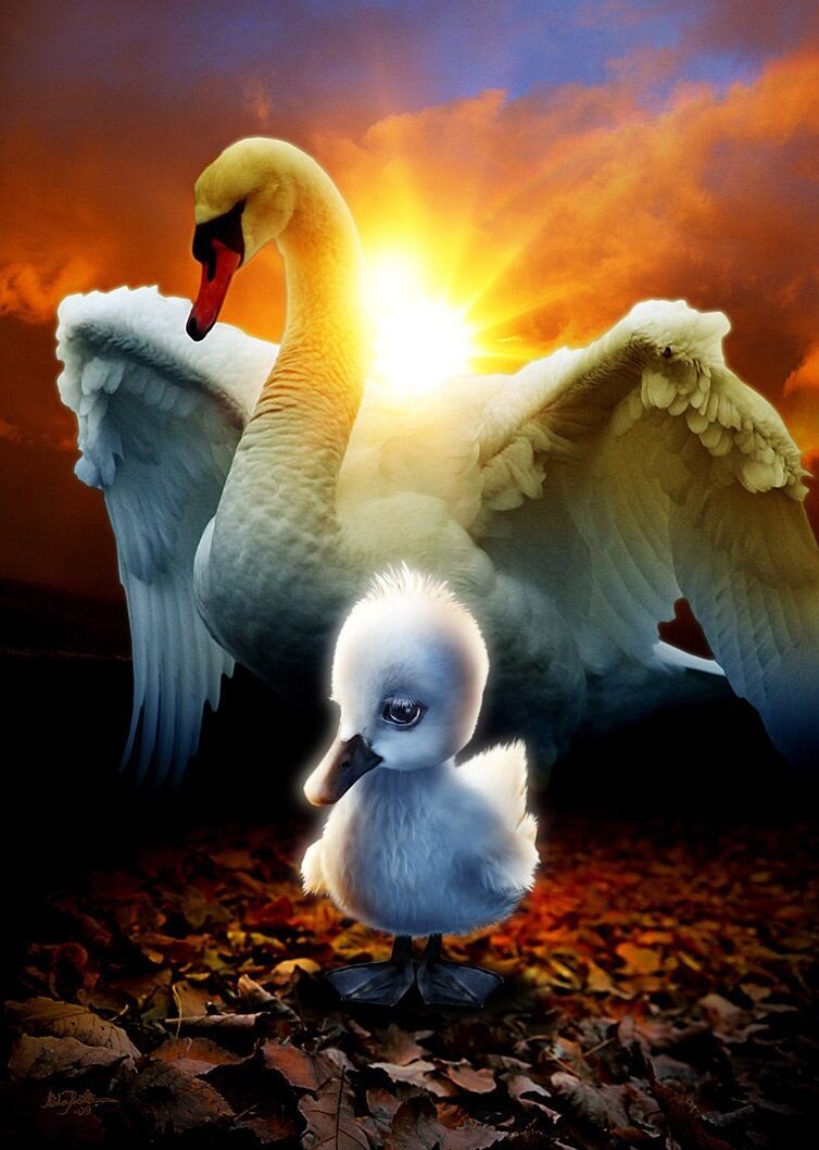 Сегодня я продолжу анализ сказки Андерсена "Гадкий утёнок". Вся эта драма, с одной стороны, а с другой стороны, путь к развитию, заканчивается тем, что утенок вдруг увидел себя в зеркале, в зеркале озера. «Ой, кто это?» – подумал утенок. И видно, что автор чувства удивления смешивает с чувством восхищения и неверия: "Ух ты! Да кто же это?" Он же видит, что это как бы он, потому что он ощущает свое тело - но он же плавает. И в то же время не он, а какая-то птица с красивой белой шеей выгнутой, с крыльями,очень похожа на тех птиц, которыми он восхищался. Тут происходит осознание мира изнутри наружу. Он подплывает, и птицы-лебеди призывают других и принимают его, не отталкивая. Он понимает, что он часть их. И когда они пролетают над птичьим двором, он видит, даже маму утку видит, чувство грусти, грусти и печаль его охватывает. Это подкрепляется музыкой в мультике, как любое чувство потери. Потери старых связей, маминого тепла, неизбывшихся мечт, фантазии, потери отношений. Такое чувство г
