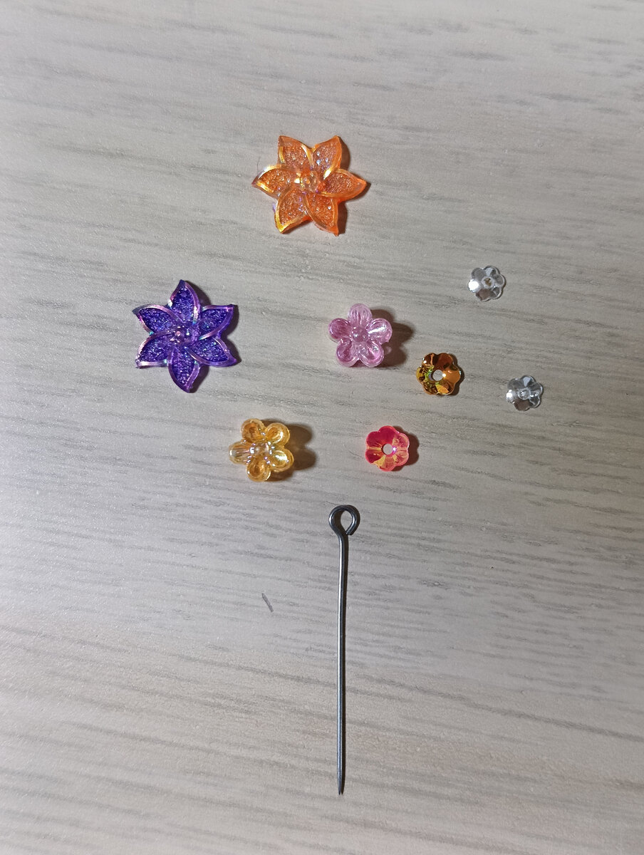 Добро пожаловать в мастерскую magic_dolls, ООАК! Продолжаю рассказывать о переделке Блонди Эвер Афтер Хай в японочку Харуми. Очередь за украшениями и обувью. Традиционно японские девушки украшают волосы заколками канзаши. Это заколка-шпилька из цветов. В Японии верили, что металлические заострённые концы шпильки отгоняют от девушек злых духов. Не знаю, из чего раньше делали цветы для заколки, но сейчас их делают из атласных лент или ткани. Признаюсь честно, я бы не смогла сделать подобные украшения из лент даже в человеческом формате - это довольно сложно. Для формата куклы эти цветы ещё мельче. Поэтому я подобрала похожей формы пластиковые цветы для украшения ногтей. И нашла в своих запасах бусины и пайетки в виде цветов. Показала это богатство Екатерине. Самые крупные цветы дополнительно покрашены прозрачной витражной краской на пробу. Екатерина в иллюстраторе прикинула расположение цветов и подвесок заколки. И вот такая красота у нас получилась. Держаться заколка будет на бу