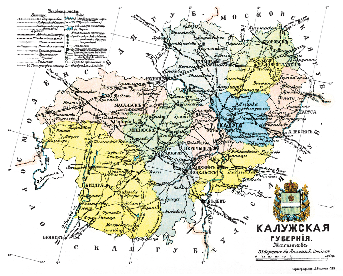 В 1708 году Россия была разделена на 8 губерний, в 1708 из частей Московской и Смоленской губерний образовалась Калужская провинция, к 1775 сформировавшаяся в губернию. В дальнейшем ее территория немного уменьшилась из-за передачи кусочков в Тульскую, Московскую, Брянскую губернии. В 1929 Калужская была упразднена, ее территории переданы в Московскую и Западную (с центром в Смоленске) области. В 1944 образовалась Калужская область, границы которой остались практически неизменными. Подробности Государственный архив Калужской области (ГАКО), источники по генеалогии в ГАКО, форум на сайте Генеалогические чтения, вконтакте, на форуме ВГД, в ОК Муниципальные архивы Калужская область в соцсетях: форум ВГД Калужская область, ; вконтакте Генеалогия. Калужская губерния, Боброво/Бебелево и окрестности. Генеалогия; телеграм Familio | Генеалогия Калужской области, Калужская генеалогия и некрополистика, Калужская генеалогия, Калужская генеалогия (чат земляков) Список населенных мест Калужской губер