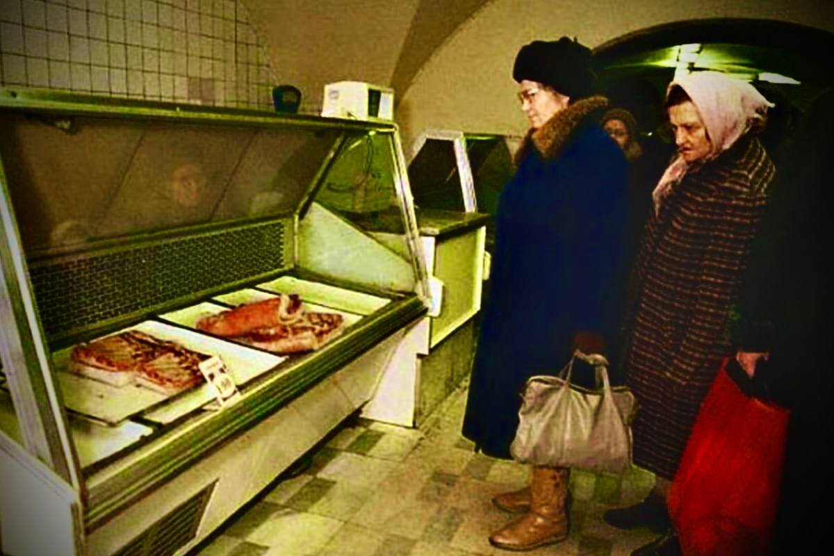 Хорошее мясо либо вообще не завозилось в магазины, либо раздавалось по завышенной цене «по знакомству» – часто с черного хода магазина. Помимо мяса, особо дефицитными продуктами были сырокопченые и сыровяленые колбасы (из-за наличия в них мяса, в отличии от вареной, которую делали неизвестно из чего), натуральный кофе (вместо него был распространен «кофейный напиток» с цикорием), хорошие рыбные консервы.