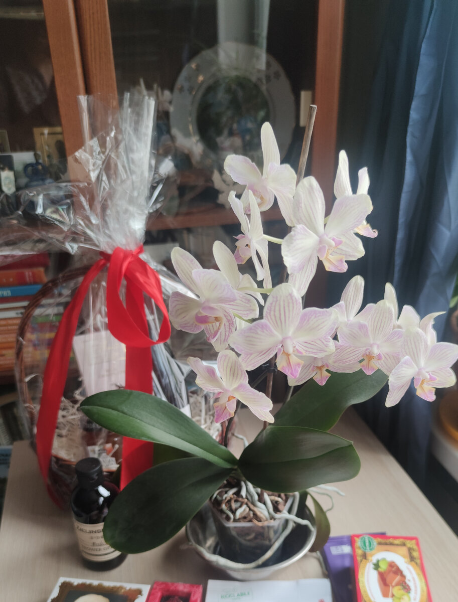 Да, я такая, хочу похвастаться подаренными цветами на 8 марта. Дуэт сыновей одарил меня орхидеей (старший спонсировал, младший осуществлял мою мечту). Досталась мне такая вот нежность Прям страшно дотронуться до цветка! А из самокупленных в "Пятерочке" гиацинтов получилась такая композиция Дай Бог, что бы они расцвели, а то что-то хиловатые цветы, в отличие (или "отличии"? всё время забываю) от жирной листвы☹️. А на работе мне при раздаче подарков досталась гортензия, которая, не доехав до дома, увяла. Вот теперь думаю, не попробовать ли мне её зачеренковать для горшечного цветения? Всем хорошего дня и спасибо, что прочитали! ❤