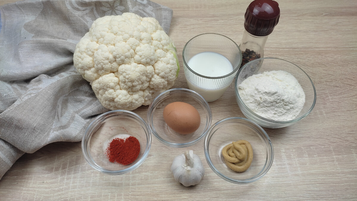 Сытная и невероятно вкусная цветная капуста в кляре на каждый день. Быстро и просто приготовить на сковороде. Цветную капусту можно подать в качестве гарнира, ведь она великолепно сочетается с мясными блюдами, или как отдельную закуску с любым соусом. К ней подходит и кетчуп, и майонез, и сметанно-чесночный соус. Приготовьте такую капусту дома и вы сможете насладится ее нежным вкусом. Цветная капуста не только вкусное, но и очень полезное блюдо. Ведь в ее состав входят пищевые волокна, которые стимулируют работу всего желудочно-кишечного тракта, способствуют выведению из организма токсинов и холестерина. Также цветная капуста является источником витамина С, который укрепляет наш иммунитет и способствует усвоению железа, и витаминов группы, которые нужны нам для обмена веществ, для нормальной работы нервной и мышечной систем. Поэтому, готовя цветную капусту хотя бы раз в неделю, вы оказываете неоценимую пользу своему организму. Ингредиенты: Цветная капуста 350 гр. Яйцо 1 шт. Пшенич