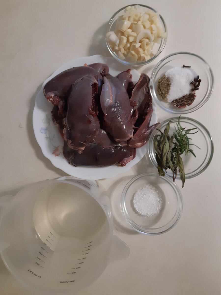 Блюда из Дичи всегда были праздничными, парадными. Я готовила, диких заполярных куропаток. Но можно взять рябчиков, фазана, перепёлку. Сейчас на рынке большое разнообразие. Готовила по старорусскому рецепту, из книги Похлёбкина В.В. с небольшим изменением. У него, в конце, грудки заливают сметаной. Я не стала. Хотелось вкуса дичи. Состав: Приготовление: Куропаток разделываем, снимаем шкурку с перьями, стараясь не повредить зоб. Грудки отделяем от потрохов, моем. У меня 4 штуки (от 4 куропаток). Разрезаем каждую грудку пополам. (можно оставить целыми) Готовим маринад: Воду кипятим и закладываем: соль, мяту, можжевельник (розмарин), бутоны гвоздики, перец Отставляем с огня, и сразу закладываем: чеснок(мелко нарезанный), лук (нарезанный средними кусками), лимонную кислоту. Даём остыть. Заливаем грудки куропатки. Оставляем в холодильнике на ночь. На следующий день, достаём грудки из маринада, даём стечь или протираем бумажным полотенцем Разогреваем утятницу (можно любую форму), нали