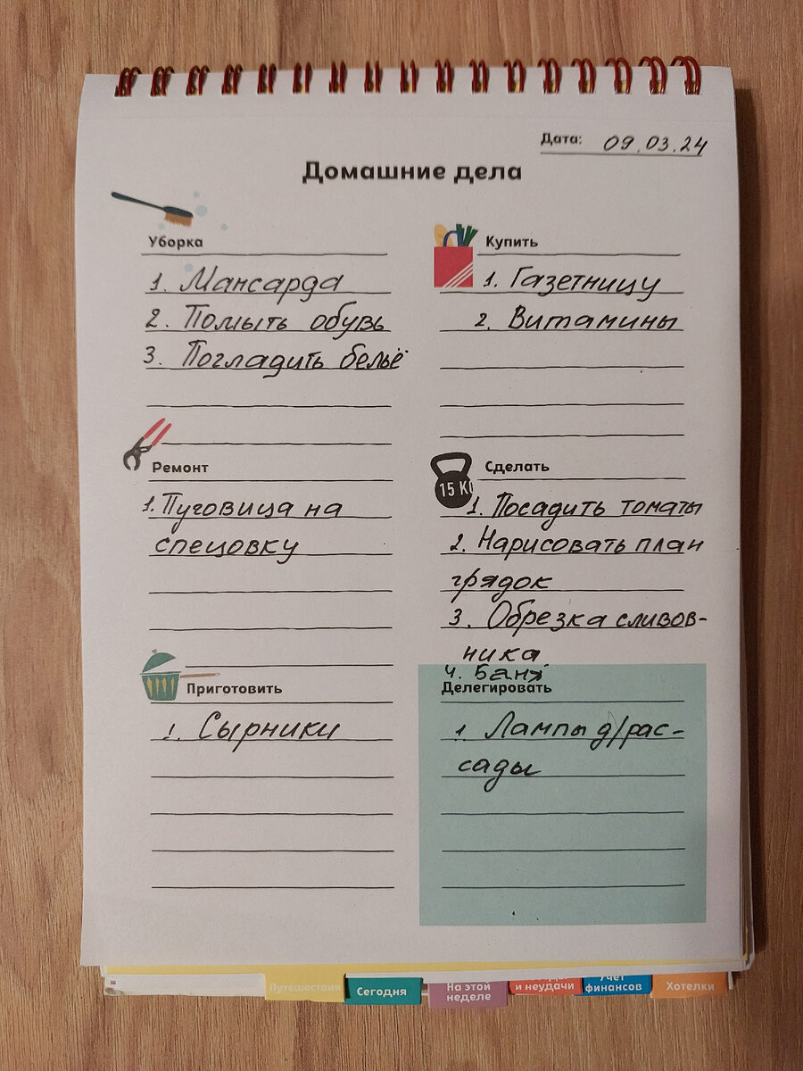 Быстро в раздел УБОРКА пишу, что буду прибирать (каждый день выделяю на уборку полчасика, чтоб немного освободить выходные).