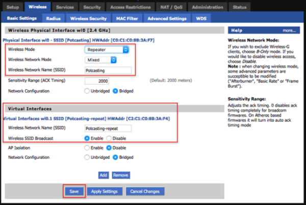 Настройка DD-WRT в качестве беспроводного ретранслятора