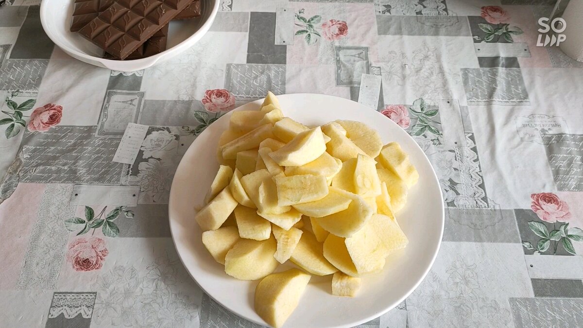 Простой десерт из двух ингредиентов. Понадобится: 4 яблока и 3 плитки шоколада. Яблоки очистить от кожуры, сердцевины и нарезать н кусочки Залить водой и поставить на огонь Через 10 минут варки, откинуть н дуршлаг В металлическую посуду переложить шоколад. Оставив небольшой кусочек для украшения Растопить на водяной бане Добавить к яблокам Пробить погружным блендером До получения однородной массы Перелить в форму, застеленную пищевой плёнкой. Оставить в холодильнике на ночь Достать десерт Натереть на тёрке оставшийся шоколад и украсить десерт Нарезать на кусочки и подавать Подробнее на видео Источник: канал "4етыре ложки" на YouTube Приятного аппетита!