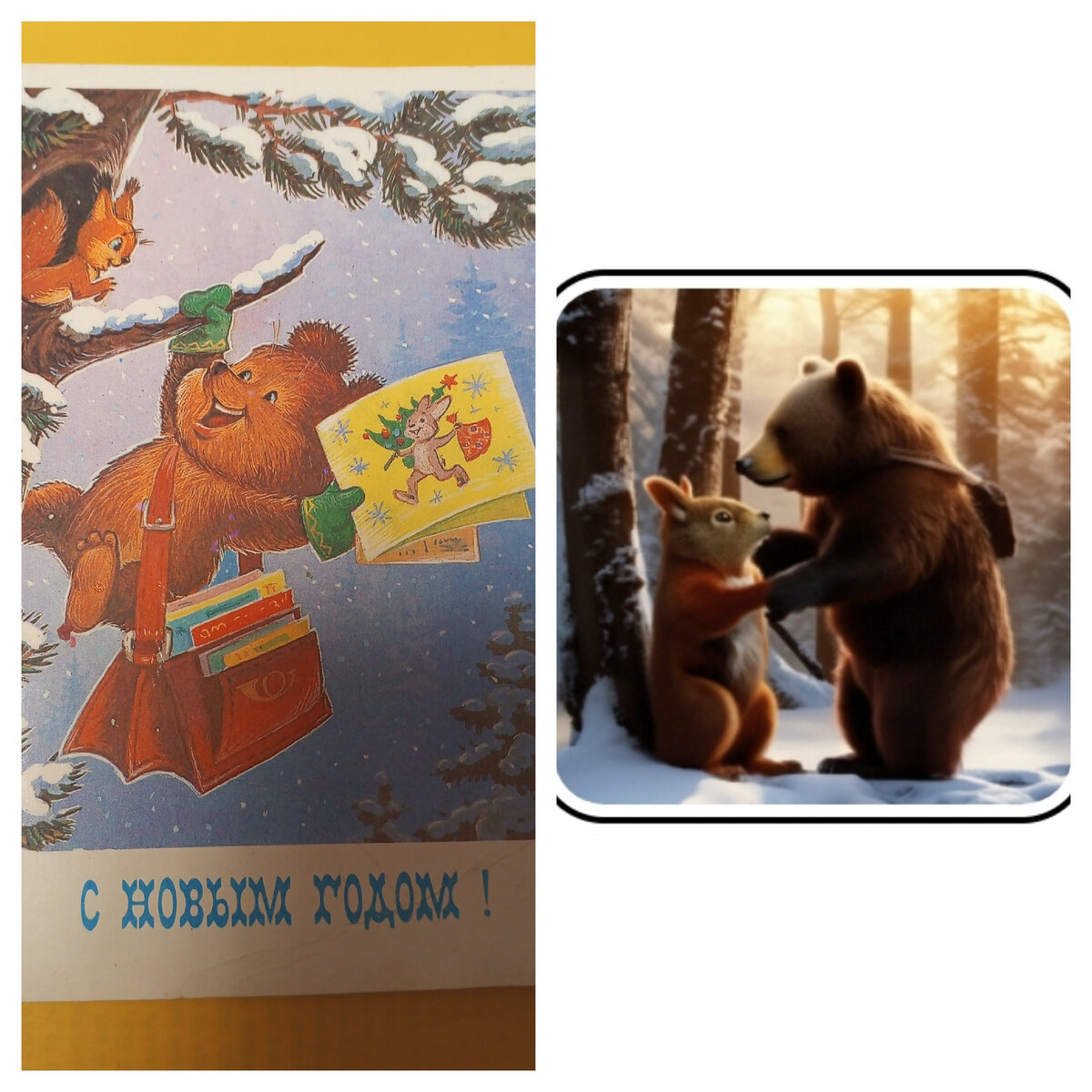 Многим знакомы советские открытки с милыми медвежатами, белочками и ежатами или строгими новогодними композициями. Вы удивитесь, что с ними сделает нейросеть. Угадайте, какая открытка была описана и праздник, с которым данная открытка поздравляла жителя СССР: Да, загадан октябрь 1917 года А вот и оригинал: Вполне гармоничная открытка! Обычные композиции с цветами и елью более-менее похожи: Только откуда-то взялась белая роза??? Самое сложное для нейросети это детские открытки, понятно, что уникального художника В. Зарубина пародировать сложно, но почему нейросеть не знает, как выглядят синички? Если бы бедный ребёнок на санях обернулся и увидел этого страшного зайца, наверное до места назначения вряд ли докатился... Не менее страшным получился медведь почтальон, принесший бедной белочке новогоднее поздравление: Почему белка доросла до таких размеров и не помещается в дупле? А вот еще несколько вариантов этой открытки: Здесь тоже несоразмерные белки, которые не могут попасть на дерево