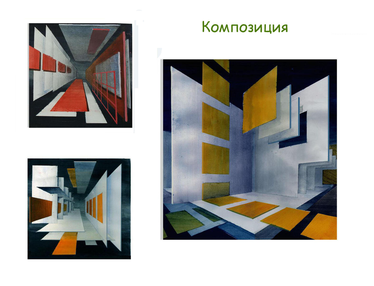 Вместе с Машей и Олей, я ходила к Мирославе Николаевне на композицию. Мне уже во многом было проще, да и композиция как предмет мне очень нравилась. Мы много чертили тушью и рейсфедером. Делали акварельные растяжки и архитектурные отмывки тушью. Единственное, что мне не нравилось, это то, что Мирослава Николаевна, как и Олег Викторович мало что объясняла. Однажды даже вышла некрасивая ситуация. Мы работали над эскизами к композиции, и одна девушка спросила декана о чем-то