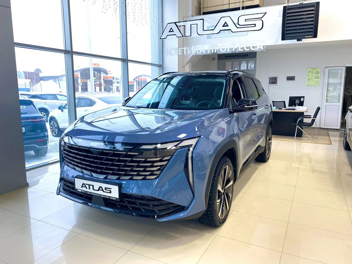 Несколько месяцев назад, в России стартовали официальные продажи Geely Atlas второго поколения. Со сменой поколений кроссовер переехал на новую платформу, получил новый дизайн и новые опции, увеличился в размерах, но при этом лишился полного привода. В России Geely Atlas второго поколения доступен с турбированным мотором 2.0л. 200 л.с., коробка передач 7-ступенчатая роботизированная. На момент написания статьи, самый дешевый Geely Atlas по данным официального сайта стоит 3 194 990 руб., а самый дорогой 3 494 990 руб. Я решил заехать в автосалон, чтобы узнать, сколько стоит Geely Atlas у дилера? Несмотря на то, что Geely Atlas появился недавно в России, кроссоверов в наличии уже достаточно много, в шоу-рум выставлено два кроссовера Geely Atlas второго поколения. Также есть в наличии и кроссоверы первого поколения, но дополнительных скидок на них нет. Дефицита других моделей, также в автосалоне нет, в наличии представлены все автомобили модельной линейки в различных комплектациях. Geel