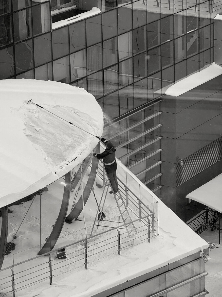 Зима, метель и снегопады В этом году зима выдалась по-настоящему снежной, какой не было, наверное, последние лет 5. На этих черно-белых снимках — кадры из жизни уставшей от снега Москвы в ожидании скорой весны. Это продолжение фотосериала из черно-белых снимков с улиц Москвы :) (первые 2 части были тут: ЧБ#1 и ЧБ#2). 1. Непростое выдалось утро. 2. Неожиданная встреча. 3. Безопасность пешеходов превыше всего. 4. Метёт! 5. Ох уж этот снег... 6. Берегись! 7. Не всем этой зимой так же холодно, как остальным :) 8. Встреча старых друзей. 9. «Откопайте меня кто-нибудь...» 10. Суровый московский нейминг. 11. Спешу, чтобы успеть. 12. Не жди автобус, просто надевай эти крылья и лети! 13. «Хозяин, ну ты скоро?...»