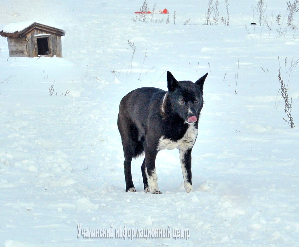 В чистом поле возле Базаргулово, около трассы, стоит одинокая будка. Живет в ней собака. Никто не знает, откуда она там появилась, но уходить с насиженного места не спешит, слово ждет кого-то. Началась эта история около двух лет назад, когда в указанном месте поселился четвероногий друг человека. «Наверное, кто-то из проезжающих мимо людей выкинул, - размышляет местная жительница Гульдар Роор. – Такие случаи у нас не редкость: бросают и котят, и щенков. С тех пор бедняжка и живет здесь». С ходу определить породу собаки сложно. «Вероятно, помесь лайки», - делают выводы базаргуловцы, рассматривая небольшую красавицу черного окраса с белым галстуком на шее. Она осталась жить на том месте, где ее оставили, изредка захаживая в деревню в поисках пропитания. Но потом, вероятно, ее хотели пристрелить, и бедняжка перестала появляться возле жилых домов. Так и сидит на одном месте. Позже кто-то из сердобольных жителей соорудил ей добротную будку. Когда мы подъехали к этому месту, наша четвероног