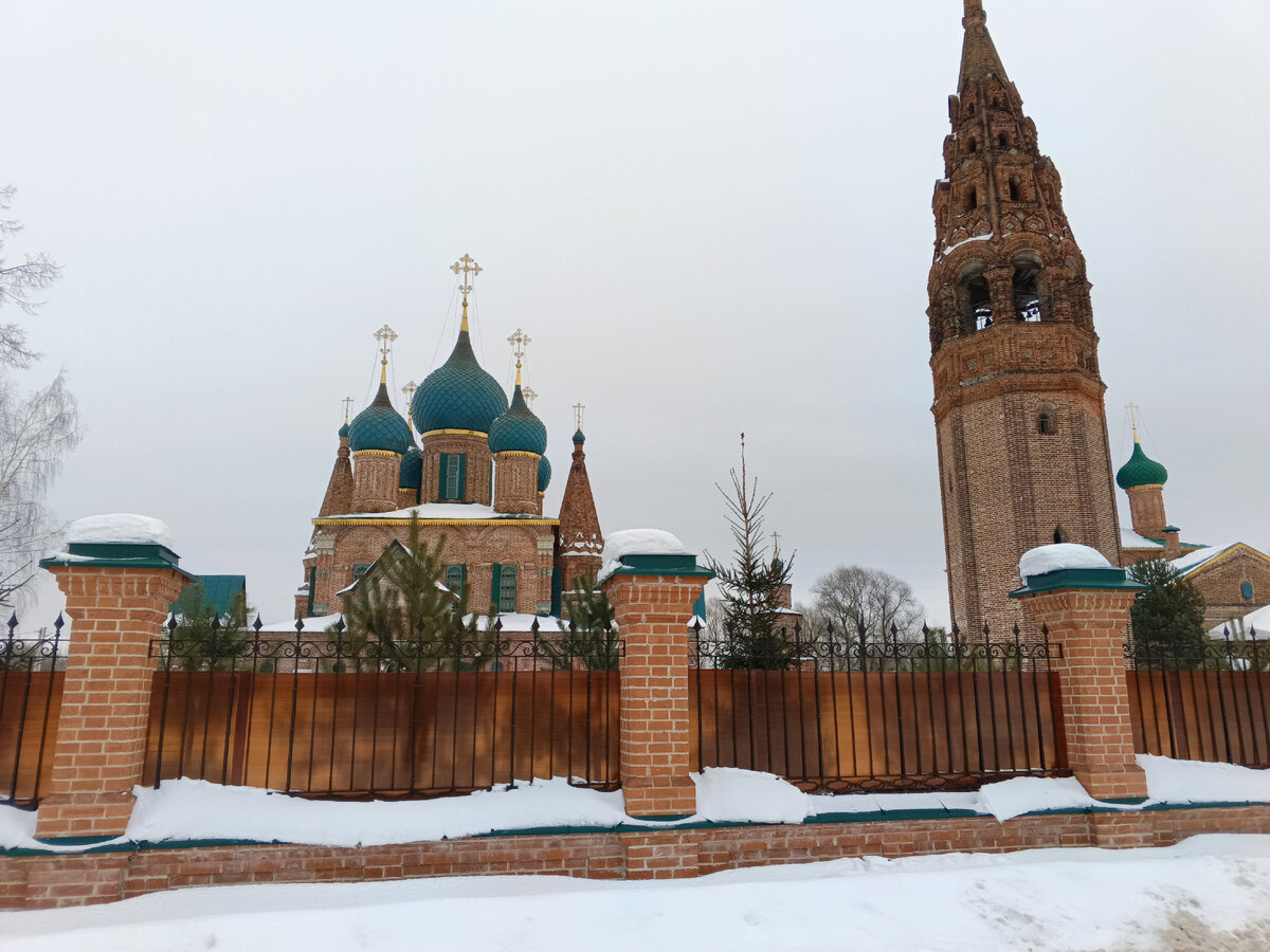 которая располагалась в этом районе в 16-17 веках. Ансамбль объединяет в себе несколько строений. Среди них церковь Иоанна Златоуста, Владимирский храм, шатровая колокольня и Святые ворота. Зимой не каждый турист сюда поедет, поскольку маршрут совсем не популярный. Хотя добраться сюда очень просто. Стоит лишь сесть на автобус №4 на площади Подбельского и проехать две остановки. Затем немного пройти пешком в сторону Волги. И вы на месте. Для начала автобусной поездки все-таки придется вернуться на Подбелку. А это около километра. Ежели такого желания нет, можно вызвать такси в район Стрелки. Впрочем морозной зимой возможно получится срезать, и добраться прямо по Волге. Там может быть протоптана рыбацкая тропинка. Зато летом панораму ансамбля можно лицезреть в полной
