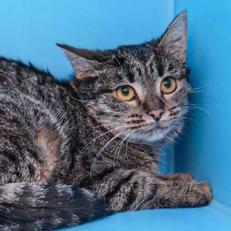Самая трогательная, невероятно нежная миниатюрная кошечка. При взгляде на нее сердце замирает: Пеппер кажется такой хрупкой, маленькой в боксе.. Она как котеночек. Робкая, но очень добрая. Любит, когда ее гладят. Мурчит, зажмурив глазки. Она не умеет просить о ласке, не прыгает на человека, мурча и бодаясь. Но она так нежно утыкается носиком, если поднесешь руку. Доверяет. И смотрит с надеждой: "Человек, ты же не уйдешь от меня?".. Пеппер около полутора-двух лет. А по виду она совсем кроха. К сожалению, ей "не повезло" родиться беленькой или пушистой - она полосатик, а таких люди почему-то брать не хотят. Не дают даже шанса, просто проходят мимо ее боксика.. А Пеппер сидит тихонечко и ждёт. И так летят дни, недели ее одиночества. Пеппер стерилизована, здорова, обработана. Была привезена на стерилизацию под выпуск, но над ней сжалились. На улице она явно голодала, там ей не выжить долго. А что, если дом не найдётся? Неужели всю жизнь в боксике? Неужели ее так никто и не полюбит?.. Мос