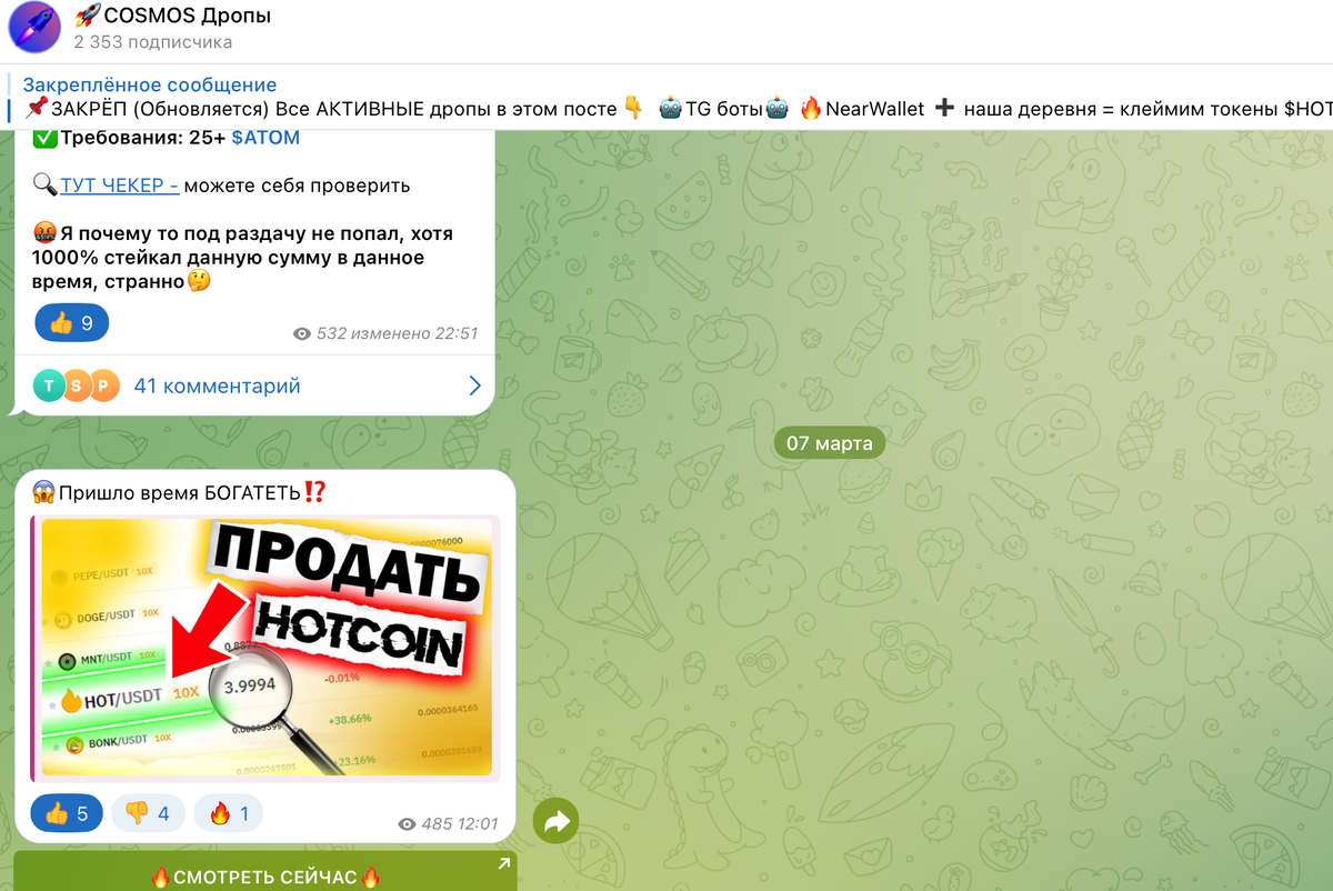 🔥🔥🔥Наш телеграм канал о дропах в экосистеме COSMOS и других активных раздачах: https://t.me/cosmos_drop/347