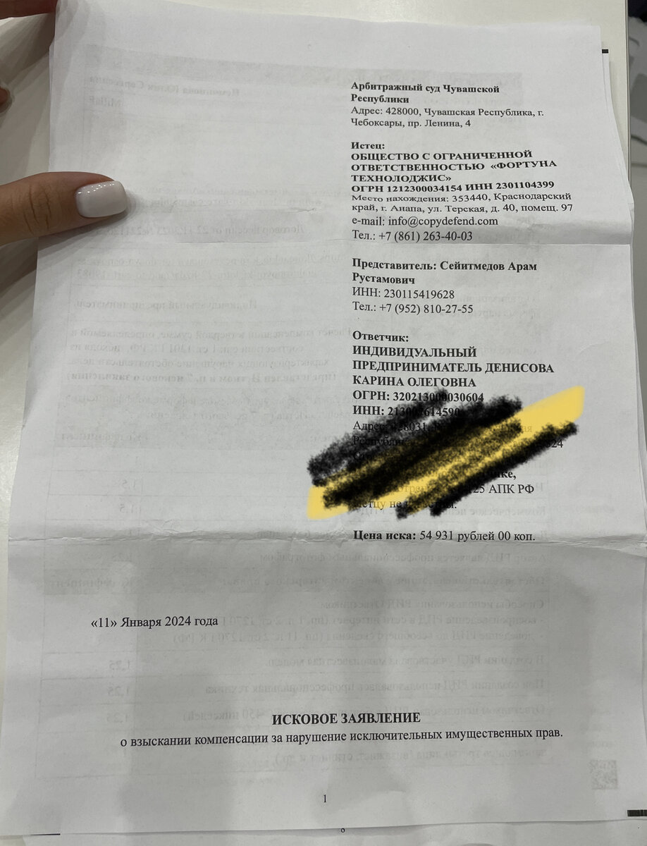 Картинка была сделана в 2022 году, иск прилетел в 2024. Наш дизайнер готовила этот макет в программе Canva. У нее была куплена лицензия. Она предоставила мне чек. Я начала объяснять это сотрудникам «Копидефенд».