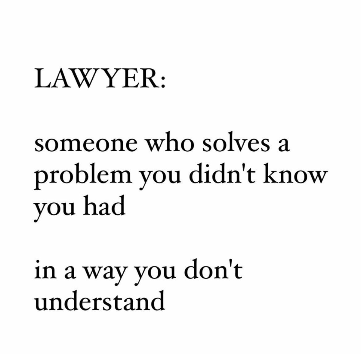 Так и создается ощущение у клиентов, что юридический мир - это очень сложно и очень дорого, и лучше не связываться с юристами.