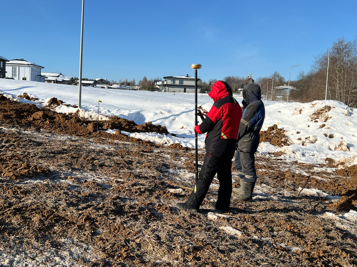 Когда Заказчик купил земельный участок и приступает непосредственно к работам по строительству загородного дома, ему надо сначала определить границы своего участка для местности. По утвержденным правилам, определять и устанавливать границы земельных участков может только геодезист со статусом кадастрового инженера. Недавно, Заказчик, с которым я работаю, поступил именно так. Вызвал местного геодезиста со статусом кадастрового инженера, который установил колышки по границам участка, чтобы строителям было удобнее разметить место расположения будущего дома. Имея на руках утвержденный генплан участка с привязками к границам участка, совсем не сложно с помощью двух рулеток разметить на натуре границы будущего дома. Но бывают исключения, как например в моем последнем случае. Мы не учли такой фактор, как перепад на участке. Перепад был очень большой, более 170 см. Планировались в качестве фундамента для дома железобетонные забивные сваи. При таком перепаде практически невозможно разметить св