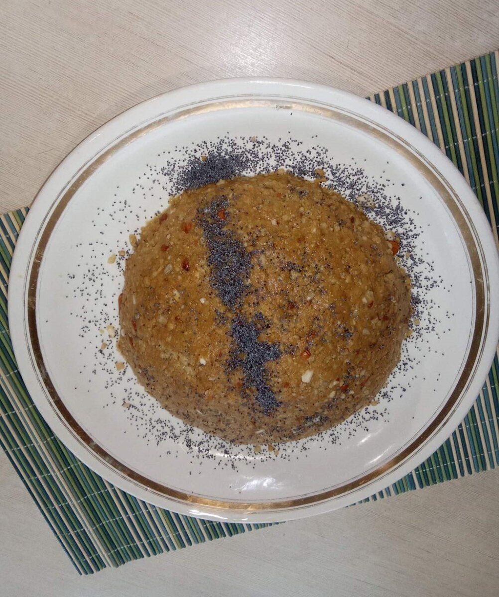 Массу переложить на блюдо и сформировать муравейник. Посыпать маком для имитации муравьёв. Поставить на холод. Через два часа можно приступать к дегустации.
