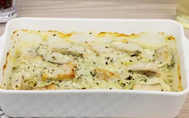 В этом блюде соблюден баланс белков, жиров, углеводов и клетчатки, а еще это просто вкусно. Ингредиенты: Филе белой рыбы – 500 г, рис – 300 г, цуккини или кабачки – 2 шт., сметана – 500 г, порей – 1 шт., соль, перец, травы по вкусу. Приготовление: