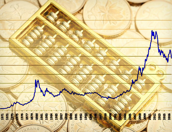 В тот же период годовой уровень инфляции составлял 3,2%, что означает, что реальная доходность золота за 44-летний период была нулевой. Технически цена на золото следовала за индексом потребительских цен с 1980 года:
