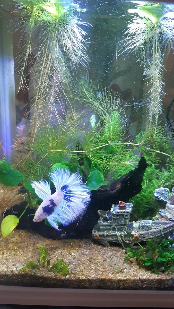 Как я уже писала, младшенький мой получил от Деда Мороза красивый маленький аквариум на рабочий стол, там счастливо проживают петух Пипин по фамилии Принц, и сомик отоцинклюс Нео. Я регулярно зависаю у Гришиного стола, наблюдая за этой красотищей. И тут подоспело 17летие старшего сыночка, и он сообщил, что тоже желает себе подводное царство, но желательно побольше). А я с детства мечтала о большом аквариуме, но как то не срасталось), а тут такой отличный повод))) В общем, после длительных поисков был куплен на Авито Ювель 125 литров) С аквариумом отдали родной фильтр, компрессор и всякую мелочевку. Правда, я хотела светлый, но не нашлось такого, тогда я решила его покрасить акриловой краской, получилось не без косяков канешно, но вполне мило. И вот он счастливый момент: заливаем и обустраиваем! Процесс был весьма трудозатратным: промыть и уложить 16 кг грунта, посадить растюхи, натаскать 100 литров воды. Дети конечно помогали, но я пипец как устала. И тут я решила установить фильтр. Фи