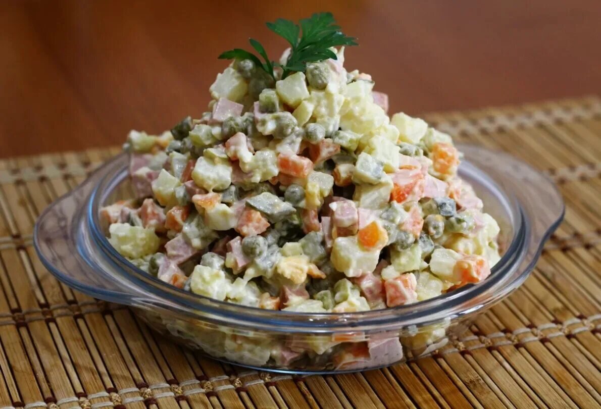Салат "Оливье" - это классический и очень популярный салат, который можно приготовить как на повседневный обед, так и на праздничный стол. Он сочетает в себе нежные кусочки мяса, хрустящие огурцы, ароматный горошек и пикантный майонез. Для приготовления салата "Оливье" нам понадобятся следующие ингредиенты: - 300 гр. вареной говядины - 4 картофелины - 4 моркови - 4 яйца - 4 соленых огурца - 1 банка консервированного горошка - 1 банка майонеза - Соль и перец по вкусу 1. Сначала приготовим мясо. Говядину отвариваем до готовности, затем охлаждаем и нарезаем на небольшие кусочки. 2. Картофель и морковь отвариваем до готовности, затем охлаждаем и нарезаем на кубики. 3. Яйца отвариваем вкрутую, затем охлаждаем и нарезаем на кубики. 4. Соленые огурцы нарезаем на кубики. 5. Горошек откидываем на дуршлаг и даем стечь жидкости. 6. В миске смешиваем все ингредиенты: мясо, картофель, морковь, яйца, огурцы и горошек. 7. Добавляем майонез и аккуратно перемешиваем все ингредиенты. 8. Салат