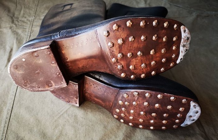 В годы Второй мировой войны подавляющее большинство немецких солдат носили так называемые «Marschstiefel» (походные сапоги), сделанные из коровьей кожи и обильно проклепанные гвоздями для улучшения сцепления подошвы с поверхностью. Помимо собственно массивных гвоздей, к таким сапогам еще и «подковы» прилагались, которые должны были устанавливаться с началом холодов. Все это «счастье», как предполагалось, должно было повысить устойчивость бойца, а также повысить ресурс сапог, защитив их от слишком быстрого изнашивания.