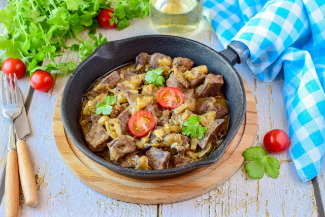 СОСТАВ / ИНГРЕДИЕНТЫ Порций: Печень говяжья -500 гр. Лук репчатый -2 шт. Пшеничная мука -3 чайн.лож Растительное масло -20 гр Соль - по вкусу Перец черный молотый - по вкусу ПОШАГОВОЕ ПРИГОТОВЛЕНИЕ Время приготовления: 25 мин