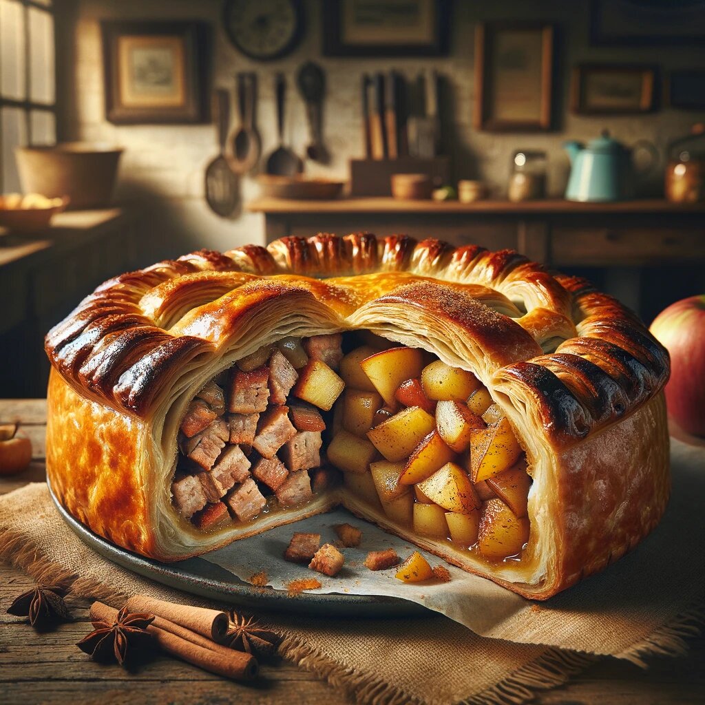 Бедфордширский клэнгер — это традиционное английское блюдо, которое первоначально было изобретено как портативный обед для работников на полях. Оно представляет собой закрытый пирог, который с одной стороны содержит мясную начинку, а с другой — сладкое дополнение, что делает его уникальным сочетанием обеда и десерта в одном. Этот рецепт сочетает в себе простоту сельской кухни с изысканностью английских кулинарных традиций, предлагая уникальное вкусовое путешествие от первого кусочка до последнего.