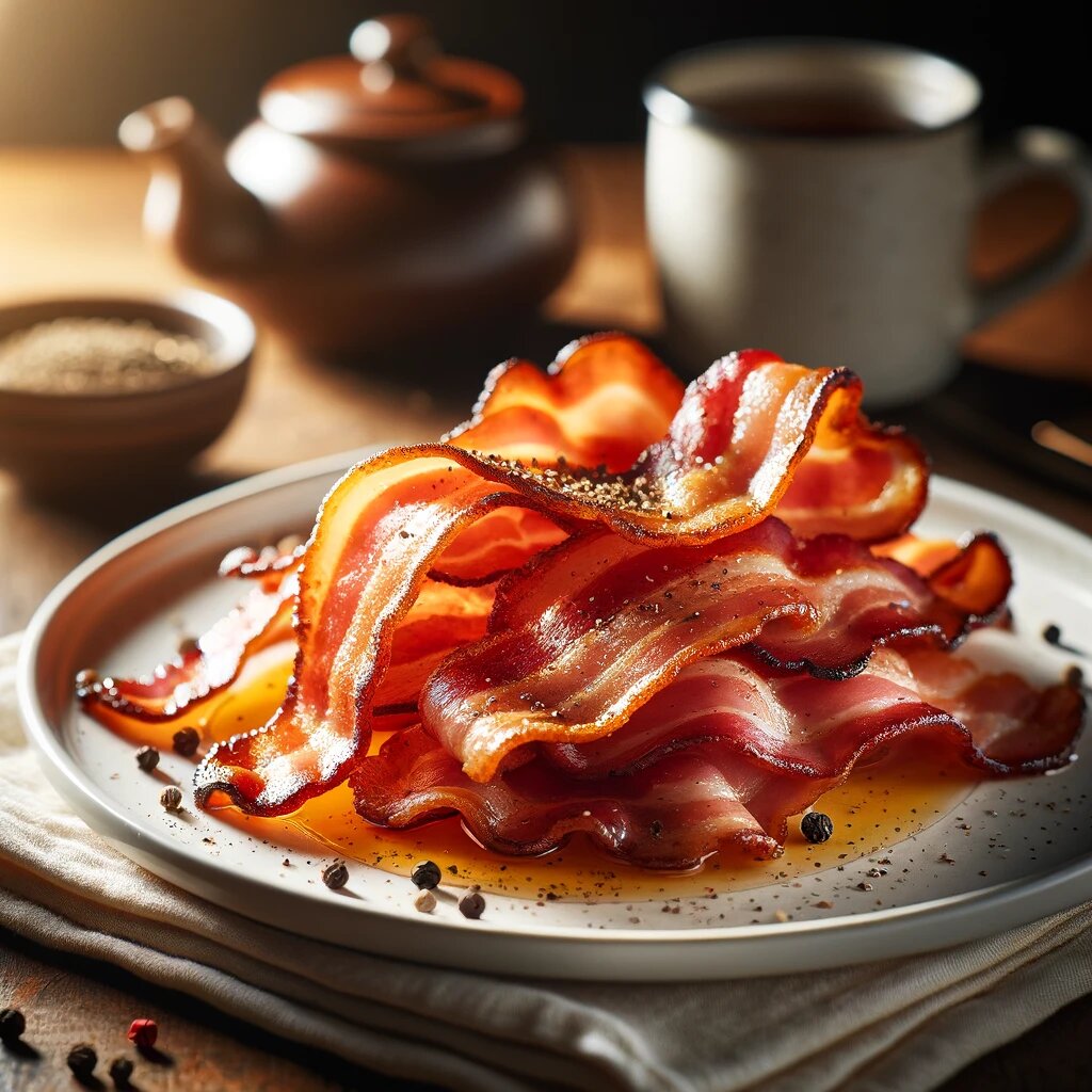 Бекон — настоящее искушение для ценителей ароматного и хрустящего мяса, идеально подходит к завтражнему столу или как добавка к гурманским блюдам. Готовить его можно разными способами, но предлагаю классический рецепт жареного бекона, который обязательно порадует вас своей простотой и изысканным вкусом. Этот рецепт не требует особых кулинарных навыков и подойдет даже начинающим. Бекон, приготовленный по этому рецепту, получается идеально хрустящим снаружи и нежным внутри, сохранив всю глубину своего вкуса.