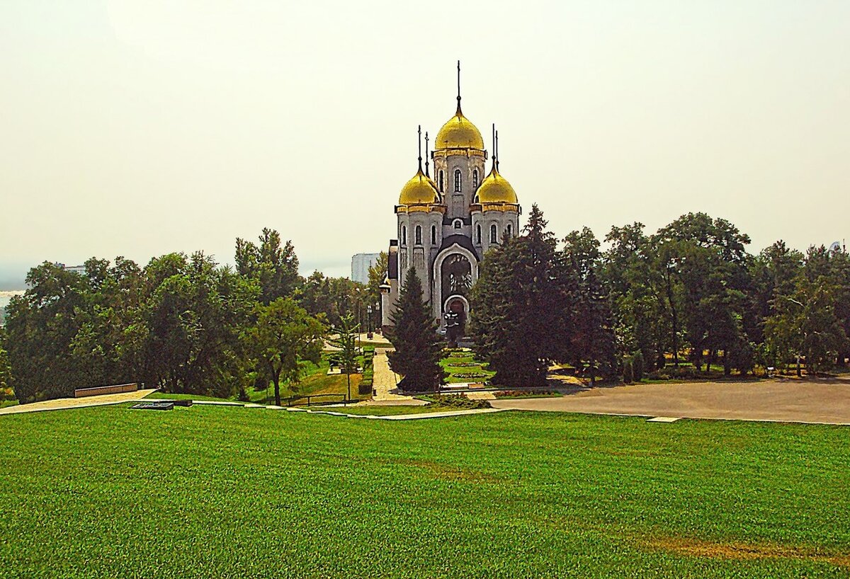 От Храма Всех Святых начинается подъем на вершину кургана к основанию главного монумента — «Родина-мать зовет!».