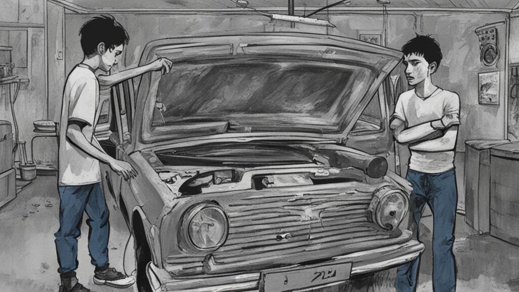 Первое время я просто помогал что-то принести, где-то болтик закрутить, но серьезную работу не доверяли. В основном я ходил и смотрел, как работает мой папа со знакомым, при этом, отец параллельно ещё рассказывал мне, про разные детали в машине и как машина устроена в целом. Да, где-то меня просили помочь, но это было в основном по принципе «придержи здесь, закрути вот это и подобное».