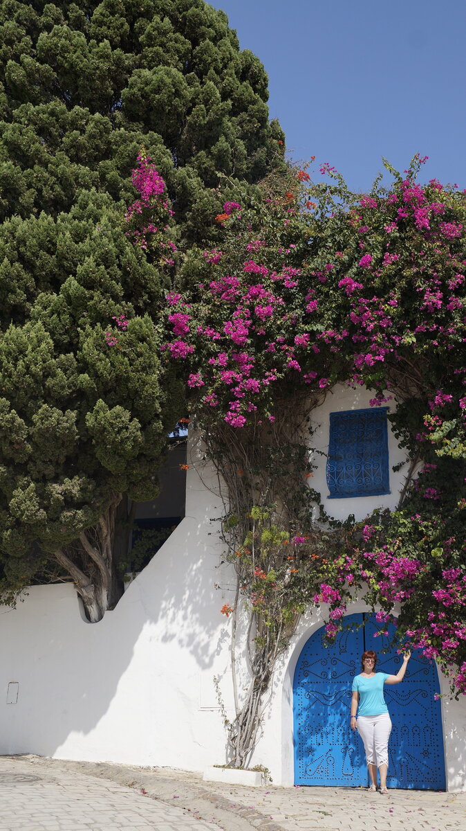 Еще одна поездка в Тунисе была у нас в город Сиди-Бу-Саид. Этот город называют городом романтиков и влюбленных, городом художников и поэтов, а еще "мусульманской Испанией". Самый красивый город Туниса расположился на горе Эль Манар, с которой открывается великолепный вид на Тунисский залив. Сегодня Сиди-Бу-Саид внесен в список памятников ЮНЕСКО, а архитектурный ансамбль в андалузском стиле охраняется законом – местным жителям запрещено перестраивать дома и перекрашивать двери и ставни в другой, кроме голубого, цвет. Городок не большой, одного дня вполне хватит пройтись по его улочкам. А если учесть , что движение происходит по вертикали, то через пару часов ноги уже переставляешь с трудом, но оно этого стоило). Мне нравится такой андалузский стиль, поэтому и прогулка по Сиди-Бу-Саиду была мне по душе, хотя слышала