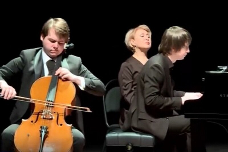 Виолончелист Василий Степанов и пианист Алексей Мельников оценили акустику На сцене филармонии прозвучал дуэт виолончели и фортепиано. Выпускники Московской консерватории и лауреаты международных конкурсов Василий Степанов и Алексей Мельников исполнили для курганцев произведения композиторов двадцатого века — Рахманинова, Стравинского, Прокофьева. Выступали с удовольствием: по их словам, наша филармония одна из лучших в России, в зале отличная акустика. Василий Степанов в Кургане впервые, Алексей уже играл камерный концерт, поэтому возвращения ждал с нетерпением. Их дуэту уже больше четырех лет. Сыграли большой репертуар, выступили много где — в том числе в Танзании. Говорят, всегда с удовольствием выходят на одну сцену, хотя сделать это бывает непросто: у обоих плотный график и успешная сольная карьера. Василий Степанов к тому же преподает. Совмещает Гнесинку и свой собственный центр поддержки молодых талантов, который открыл в Сочи. Сейчас есть девять учеников. Степанов признается: в