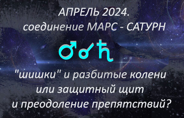 Марс соединение Сатурн - неоднозначный аспект, но именно он будет оказывать влияние первую половину апреля, а также наложит свой отпечаток, и в интерпретацию солнечного затмения 08.04.24 года. Кульминация аспекта (точный аспект) 10 апреля 2024 г.