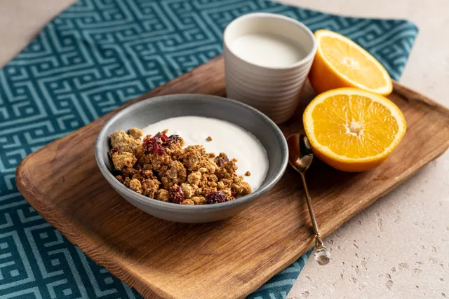 Если нет времени каждый день готовить сытный и полезный завтрак, заранее приготовьте гранолу и храните ее в герметично закрытой банке. Утром вам останется только залить смесь йогуртом, и вкусное блюдо можно подавать к столу.