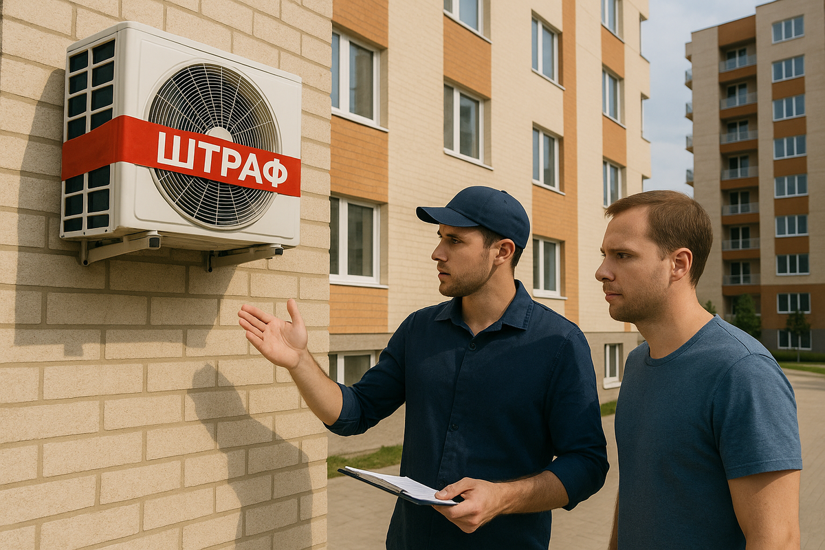 Согласно статье 7.21 КоАП РФ за самовольное размещение кондиционеров без разрешений и согласований полагается штраф за административное нарушение от 1 500 до 2 500 руб., плюс демонтаж внешнего блока за свой счет и ремонт фасада стены, который пострадал при монтаже. Добавьте к этому издержки, если дело дойдёт до суда, и сумма может превысить стоимость самого кондиционера.