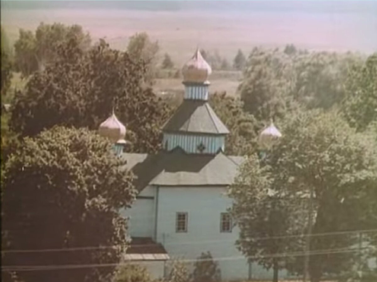 Наша церковь по размеру больше чернобыльской. Деревянная, светлая, светло-голубая. Колокольня была, колокола. Правда, звонить в колокола нам запрещали. Посчитали, понимаете, что школа рядом с церковью...