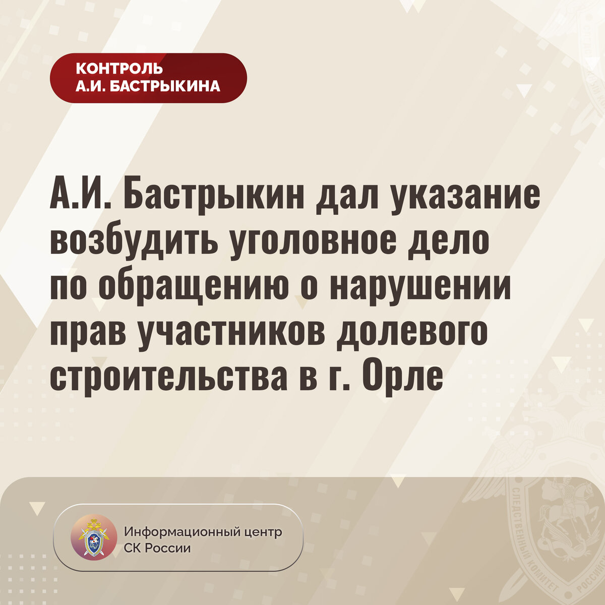 А.И. Бастрыкин дал указание возбудить уголовное дело по обращению о нарушении прав участников долевого строительства в г. Орле
